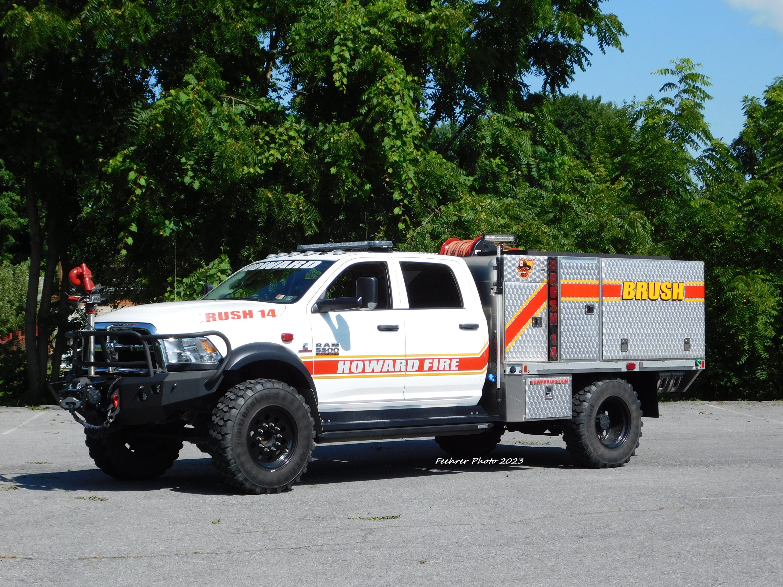 Brush 14 is a 2018 Dodge Ram 5500 equipped with a custom aluminum body, 165 GPM pump, 340-gallon water tank, and a Compressed Air Foam System (CAFS). This unit is purpose-built for wildland and interface fire response. It features all-terrain capabilities, front bumper turret, forestry hose lines, and gear compartments for rapid deployment in rugged environments.