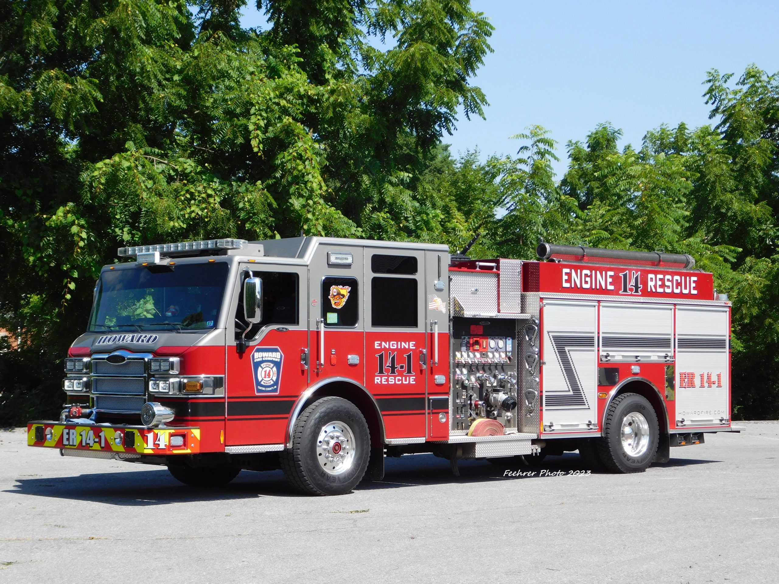 Engine Rescue 14-1 is a frontline 2013 Pierce Velocity pumper-rescue with a 1500 GPM pump and a 750-gallon water tank, designed to handle both fire suppression and technical rescue operations. Outfitted with a full set of extrication tools, ladders, SCBA, medical gear, and scene lighting, 5 bank Scott Revolveair cascade system, this unit is one of the most versatile in the fleet. Acquired in 2022, it responds to a wide range of emergencies throughout the district. Housed at the main borough station.