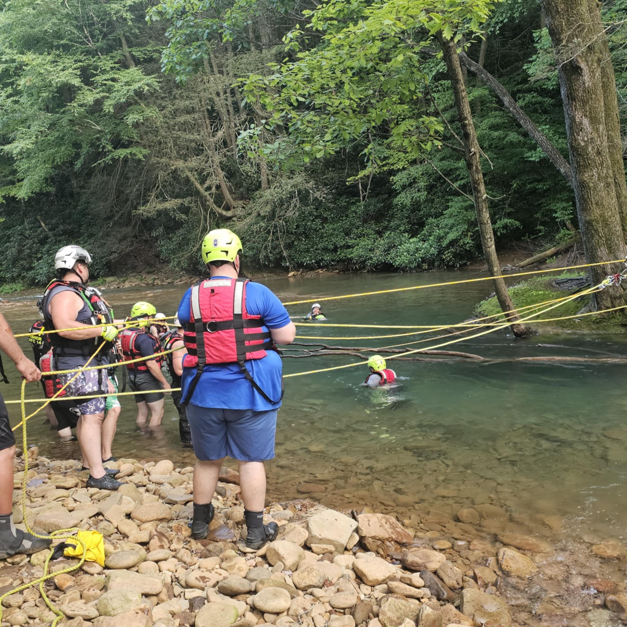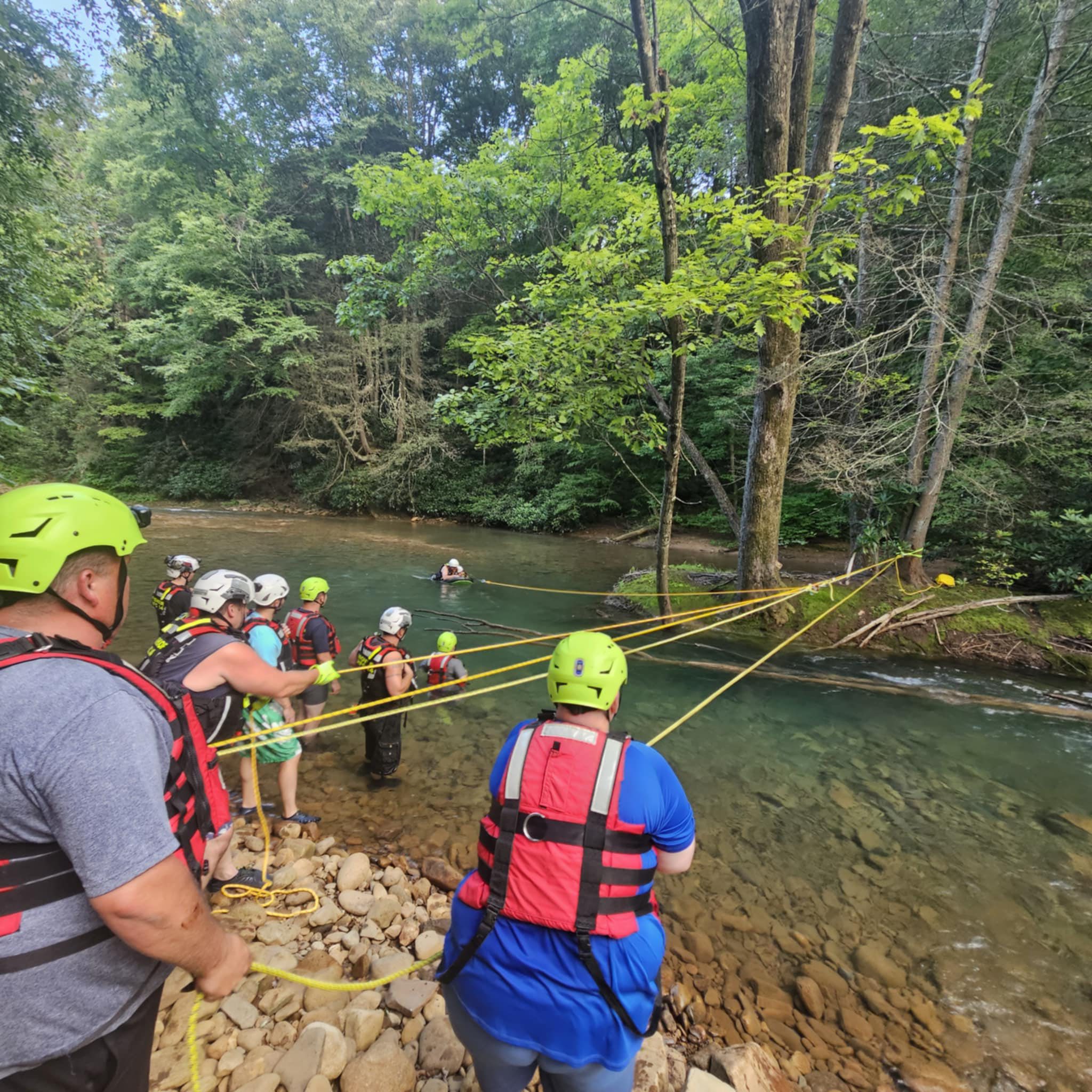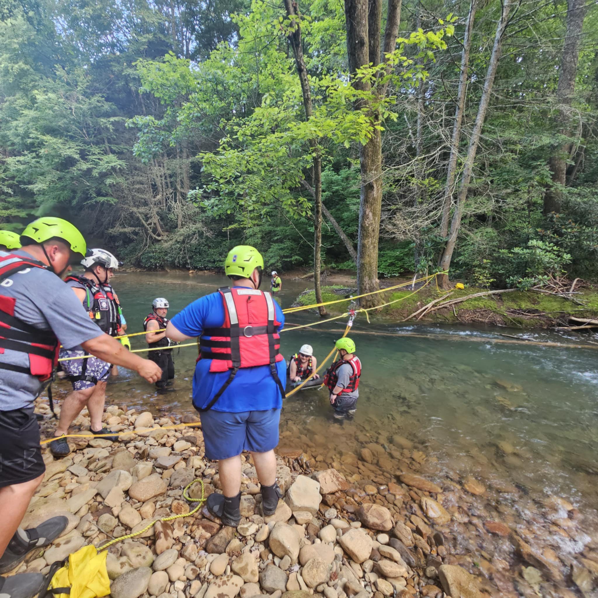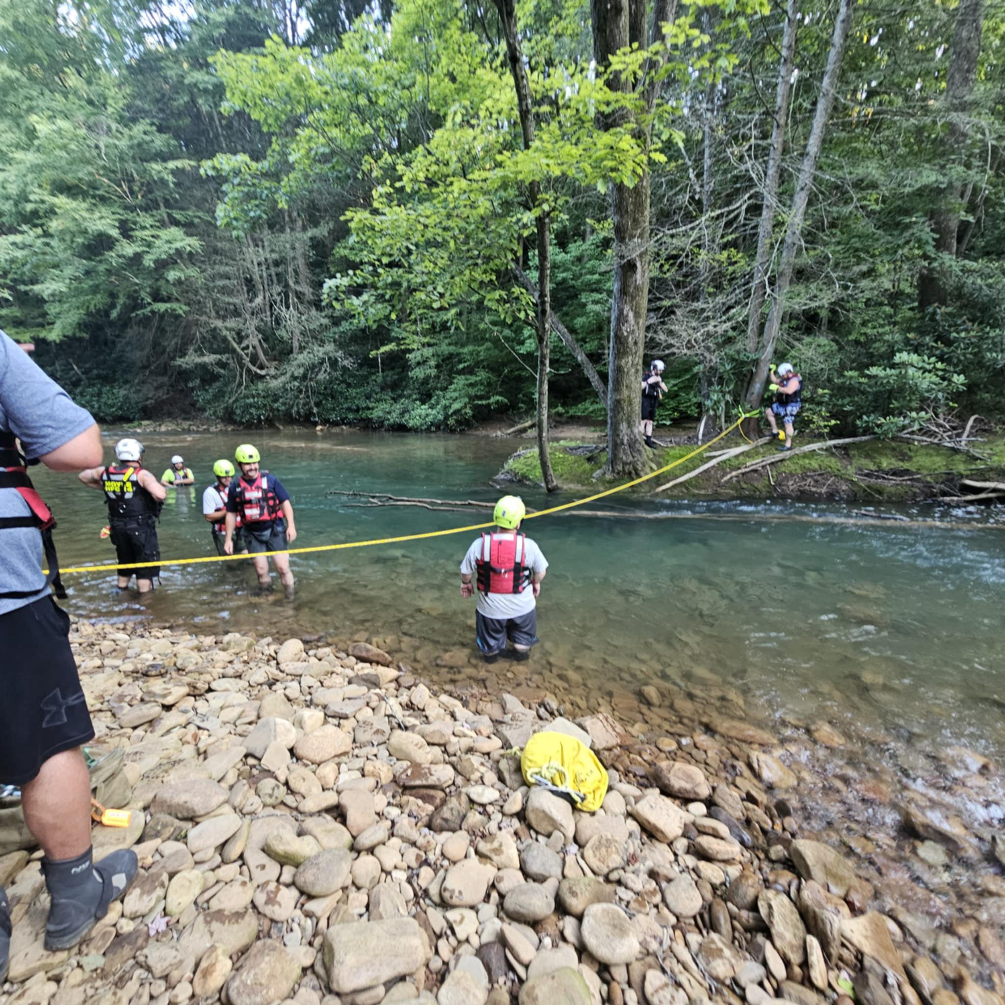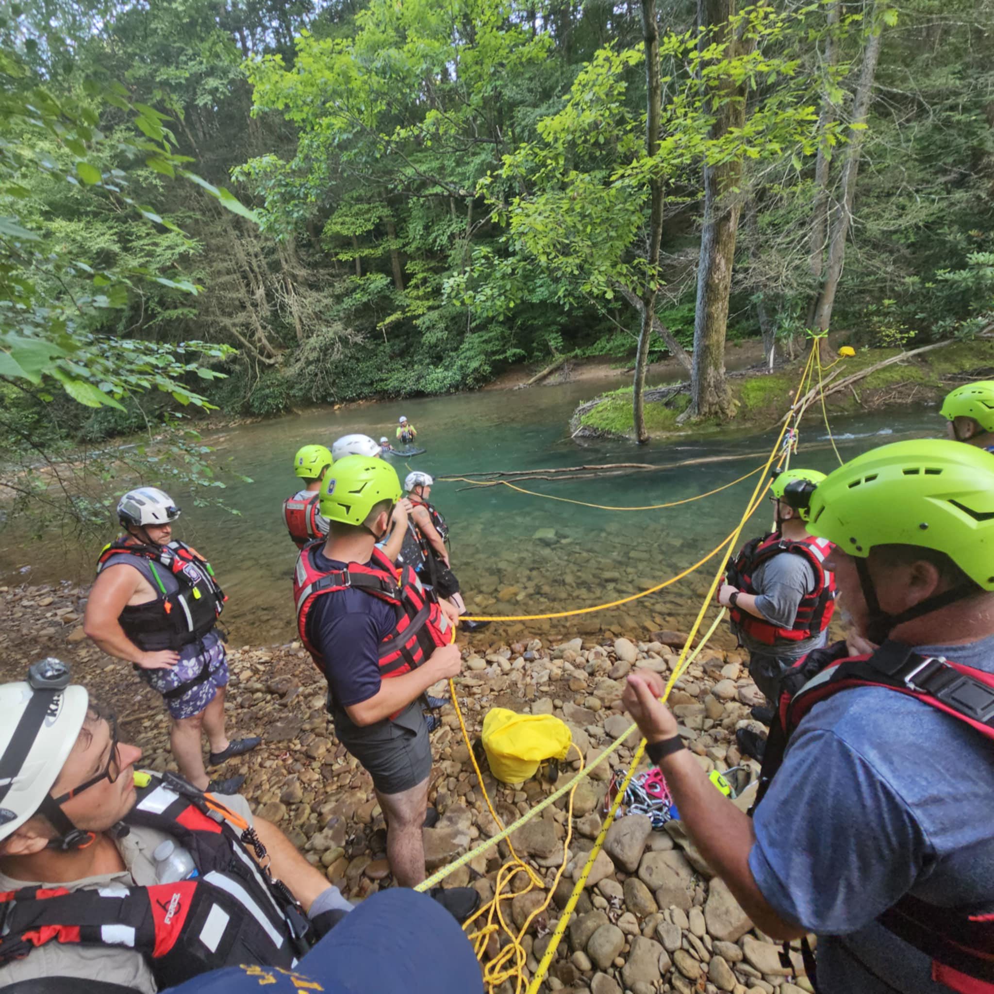 Training focused on the deployment of advanced line systems and techniques for victim removal in swift water conditions. Using a foam board, crews practiced maneuvering in faster-moving currents, simulating real-life rescues in challenging environments. These joint drills are a vital part of ensuring our responders stay prepared, coordinated, and effective when it matters most.